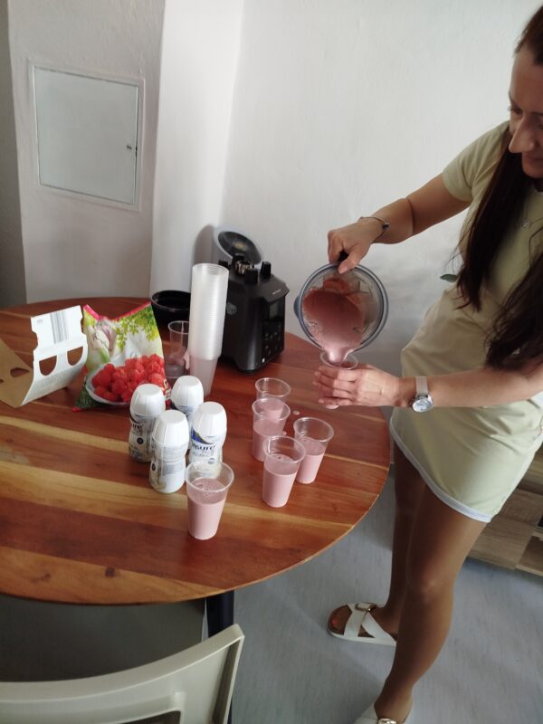 Pripravili sme hneď niekoľko druhov smuti, aby si každý mohol vybrať podľa svojej chuti. Nechýbali klasické ovocné kombinácie s banánmi a malinami. Dôležité bolo, že každé bolo pripravené s ohľadom na nutričné hodnoty a s použitím ľahko stráviteľných ingrediencií, ktoré sú pre našich seniorov ideálne.